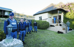 昨日,被劫葡萄牙記者住所,當地警察正在勘查現場。南非糟糕的治安狀況,使得采訪報道世界杯的記者也難以幸免。