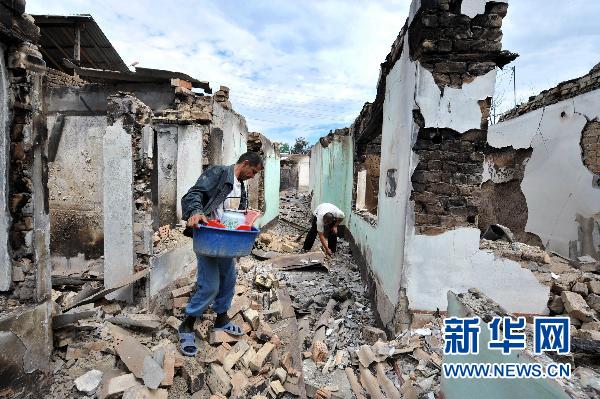 2010年6月17日 吉爾吉斯斯坦沖突導致數十萬人被迫離開家園 6月16日,在吉爾吉斯斯坦南部奧什附近的一個村莊,人們在被毀壞的建筑內尋找自己的財物。聯合國官員17日說,吉爾吉斯斯坦沖突共導致至少40萬人被迫離開家園。 新華社/法新