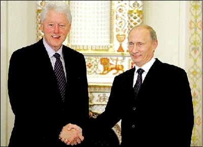 美國前總統克林頓前往俄羅斯首都莫斯科,打算在一場投資會議中發表演講,6月29日與俄總理普京會晤。