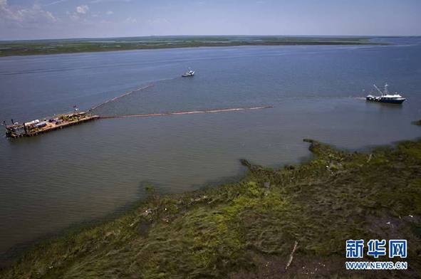 7月8日,在美國路易斯安那州斯萊德爾附近的龐恰特雷恩湖,工作船收集泄漏原油。美國得克薩斯州官員5日證實,該州東部海灘發(fā)現(xiàn)來自墨西哥灣漏油油井的油球。這表明,墨西哥灣泄漏的原油已擴(kuò)散至美國墨西哥灣沿岸所有5個州。當(dāng)?shù)孛襟w報道說,從東部的佛羅里達(dá)到西部的得克薩斯,報告發(fā)現(xiàn)油污的范圍已橫跨近900公里。新華社/路透