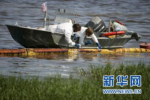 7月8日,在美國密西西比州韋夫蘭,工作人員清理泄漏原油。新華社/路透