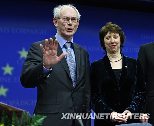 2009年11月19日,在比利時首都布魯塞爾歐盟總部,比利時首相赫爾曼·范龍佩(左)和歐盟貿(mào)易委員凱瑟琳·阿什頓在當選后出席新聞發(fā)布會。 新華社/路透