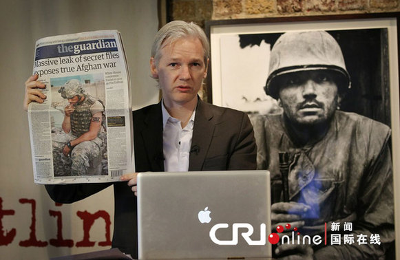 資料圖片:7月26日,英國倫敦,“維基泄密”網站創立者澳大利亞記者朱利安·阿桑奇在記者會上手持一份英國《衛報》。“維基泄密”網站公布了長達20萬頁的9.2萬份美國軍方機密報告。這些軍方報告記錄了駐阿富汗美軍不愿公開于眾的“秘密”,包括聯軍144次“意外”殺死平民,美軍全力掩蓋塔利班已獲得地對空導彈的事實,美軍如何組織秘密“暗殺或俘虜”某名冊上在列塔利班班級領導人等。