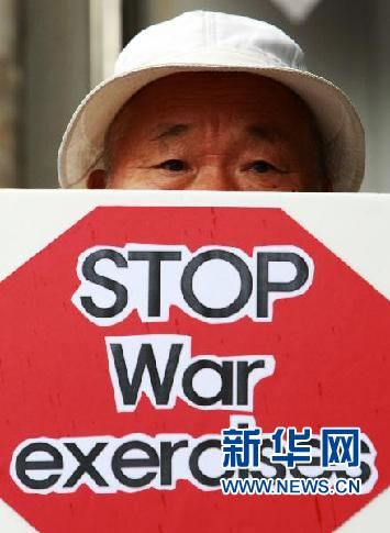 2010年8月16日 韓國民眾集會反對韓美聯(lián)合軍演 8月16日,韓國民眾在“韓美戰(zhàn)爭指揮中心”前舉行集會,呼吁和平,反對韓美舉行名為“乙支自由衛(wèi)士”的聯(lián)合軍事演習(xí)。為期兩周的韓美2010年度“乙支自由衛(wèi)士”聯(lián)合軍事演習(xí)16日起在韓國境內(nèi)開始舉行。 新華社發(fā)(樸真熙攝)