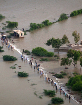 洪水已經淹沒了巴基斯坦三分之一的土地,援助物資依然極為匱乏,工程師們經常需要面對將洪水引向何方的困難抉擇。毀掉堤壩是控制洪水水位最常用的方式之一,謹慎行事可以減小洪災的影響。可是,一些報道稱,旁遮普省Muzaffargarh地區(qū)的地方官員迫使工程師將洪水引向人口密集區(qū),而避開更小、更富裕的地區(qū)。