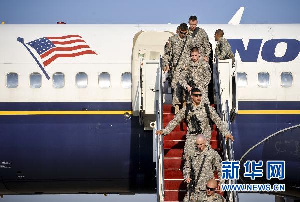 資料圖片:8月28日,在美國首都華盛頓附近的安德魯斯空軍基地,從伊拉克返回的美軍士兵走下飛機。 當天,美國陸軍第三步兵團C連大約120名官兵結束在伊拉克的戰斗任務返回華盛頓。按照美國總統奧巴馬的撤軍計劃,駐伊拉克美軍定于8月31日前撤出所有戰斗部隊。 新華社記者 張軍 攝