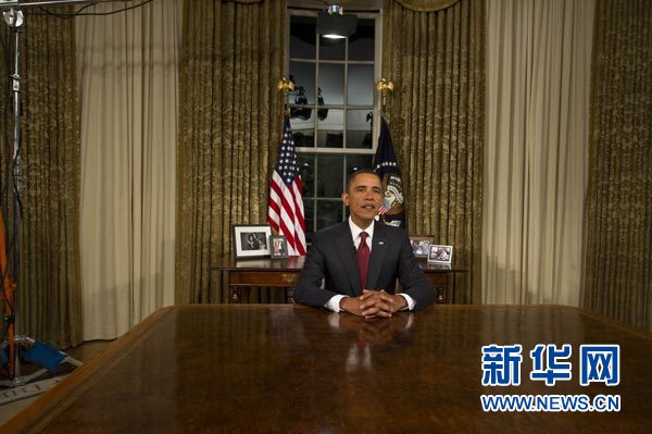 當地時間8月31日晚,美國總統奧巴馬在白宮發表講話,宣布駐伊拉克美軍作戰任務結束。 新華社/法新