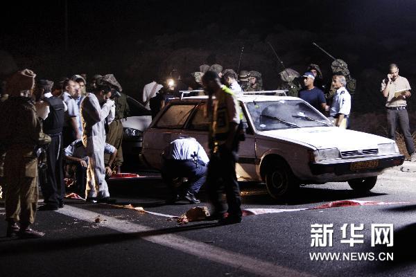 8月31日四名以色列人在約旦河西岸遭槍擊死亡,圖為以色列警察在約旦河西岸城市希伯倫附近的槍擊現場檢查遇襲車輛。