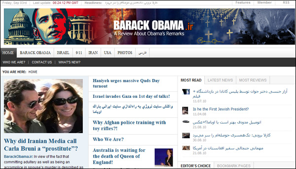 據英國《衛報》9月2日消息,伊朗一個支持總統內賈德的記者團體,近日專門為美國總統奧巴馬創建了一個網站,主要是站在伊朗的立場上分析奧巴馬的各種觀點。網站亮相第一周便贏得了近10萬的點擊。