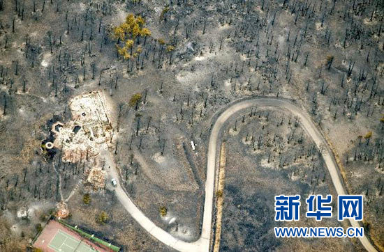 2010年9月9日美國科羅拉多州發生山火 這是9月8日拍攝的美國科羅拉多州博爾德縣西部發生山火的山區鳥瞰圖。(新華社照片,路透)