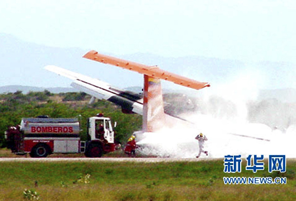 這架執(zhí)行委內(nèi)瑞拉國內(nèi)航班、載有47人的ATR-42型客機于當(dāng)?shù)貢r間13日上午10時30分左右墜毀,機上至少23人受傷。新華社/路透