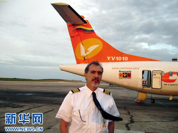 9月13日,失事客機機長拉米羅·卡德納斯在空難發生前站在客機前留影。 新華社發
