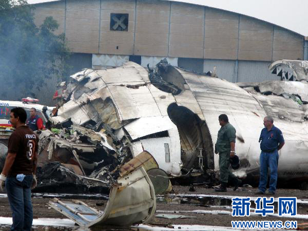 9月13日,工作人員在委內瑞拉玻利瓦爾州圭亞那城奧爾達斯港附近的墜機現場查看飛機殘骸。新華社發