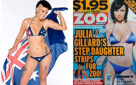 澳大利亞媒體報(bào)道說(shuō),目前困擾吉拉德的“煩心事”還不止這一件。13日,吉拉德的“準(zhǔn)繼女”菜爾德被爆于近日為澳時(shí)尚男性雜志拍攝了一組“大膽”艷照。在照片中,菜爾德身穿比基尼露出多處文身,還擺出各種迷人姿勢(shì)與澳國(guó)旗合影。