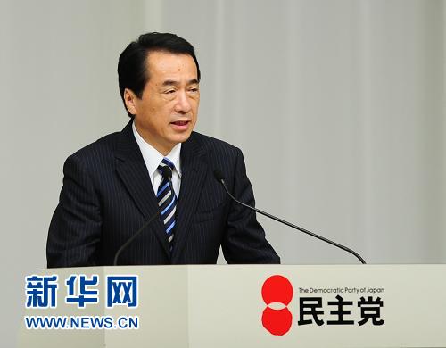 這是菅直人在日本東京當選民主黨代表后發言的資料照片(9月14日攝)。新華社記者季春鵬攝