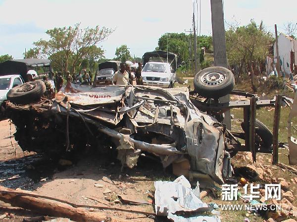 這是9月17日在斯里蘭卡東部拜蒂克洛鎮的爆炸現場拍攝的被炸毀車輛。新華社發