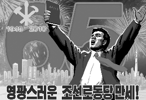 朝鮮勞動(dòng)黨建黨65周年宣傳海報(bào),該黨代表會(huì)議定于9月28日在首都平壤舉行,選舉黨的最高領(lǐng)導(dǎo)機(jī)構(gòu)。