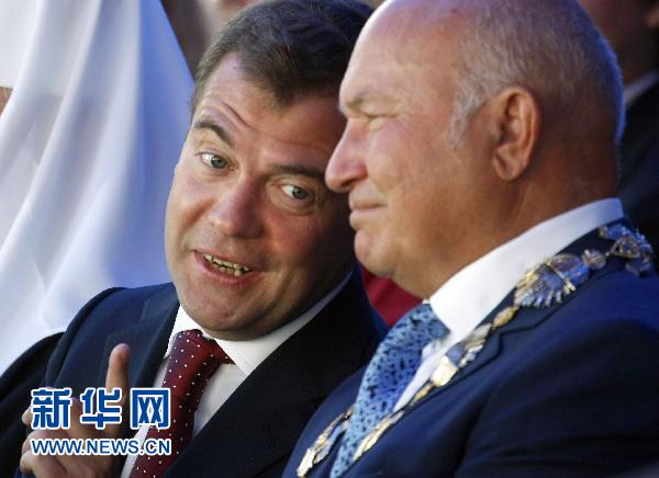 資料圖 2009年9月5日,梅德韋杰夫(左)與盧日科夫交談。 新華社/路透