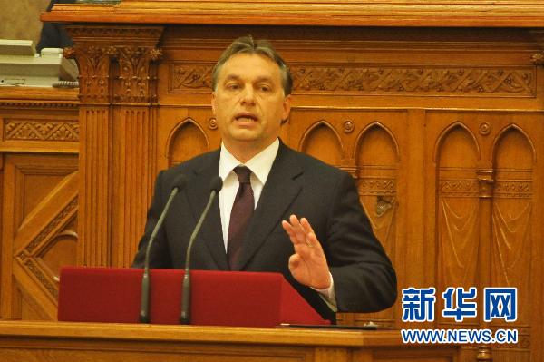 10月11日,在匈牙利首都布達佩斯,匈牙利總理歐爾班在國會會議上講話。新華社發(托爾科·道尼攝)