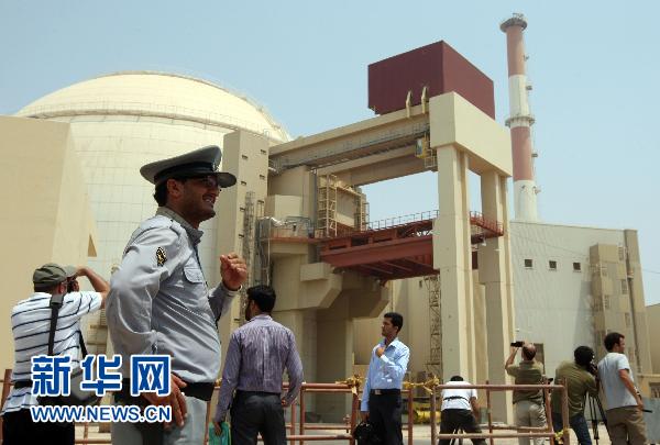 8月21日,在伊朗南部港口城市布什爾,一名安保人員站在開始核燃料裝載的布什爾核電站旁。伊朗原子能組織主席薩利希當天表示,伊朗首座核電站開始核燃料裝載表明伊朗“戰勝了敵人”,這座核電站“象征著和平”。 新華社/法新 資料圖片