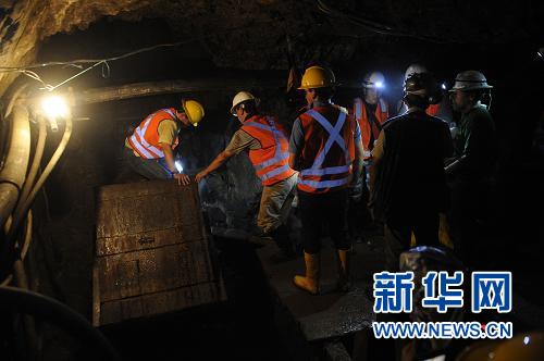 10月17日,一些救援人員與官員在厄瓜多爾埃爾奧羅省一座發生塌方事故的金礦地下150米處的坑道內工作。新華社/法新
