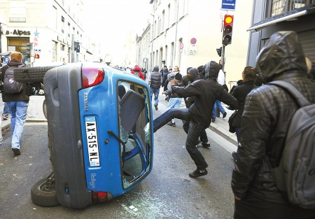 法國參議院定于20日及21日就政府力推的退休制度改革方案進(jìn)行辯論及表決,而法國街頭的罷工潮20日卻愈演愈烈,暴力活動開始在一些城市滋生。從首都巴黎到南部海港馬賽,示威民眾投擲石塊,劫掠商店、焚燒汽車。法國總統(tǒng)薩科齊當(dāng)天說,他已下令警察突破罷工民眾對燃油倉庫的封堵,以恢復(fù)燃油供應(yīng)。