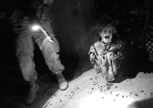 2005年1月18日,伊拉克塔爾阿法爾鎮,一名女孩在大街上哭泣。當日,這名女孩的父母被美軍士兵誤殺。