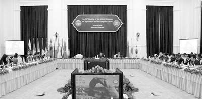 10月24日,為期一天的第10屆東南亞國家聯(lián)盟(東盟)與中國、日本、韓國農(nóng)林部長會議在柬埔寨首都金邊舉行,與會各國一致表示將繼續(xù)加強農(nóng)林發(fā)展和糧食安全領域合作。新華社記者 雷柏松攝