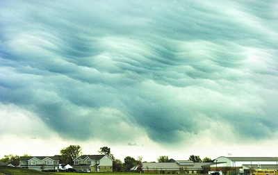 圖為暴風帶來烏云壓頂的震撼景象,風暴所過之處一片狼藉。