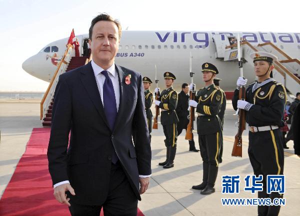 11月9日,應(yīng)中國國務(wù)院總理溫家寶邀請,英國首相戴維·卡梅倫抵達(dá)北京,開始對中國進(jìn)行正式訪問。 新華社記者謝環(huán)馳攝