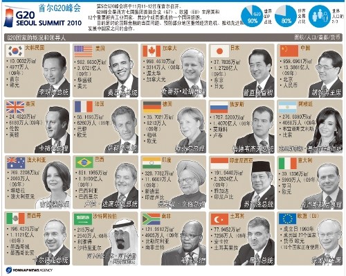 綜合外電報道,備受關注的二十國集團(G20)峰會11月11日將在韓國首都首爾舉行。此間媒體預測,G20首爾峰會將以匯率、全球金融安全網、國際金融組織改革和發展為四大主要議題。