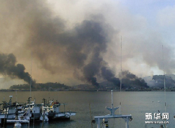 11月23日,韓國西部延坪島上硝煙滾滾