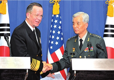 美軍參謀長聯席會議主席馬倫8日與韓國聯合參謀本部議長韓民求舉行會談,商討朝鮮半島局勢。