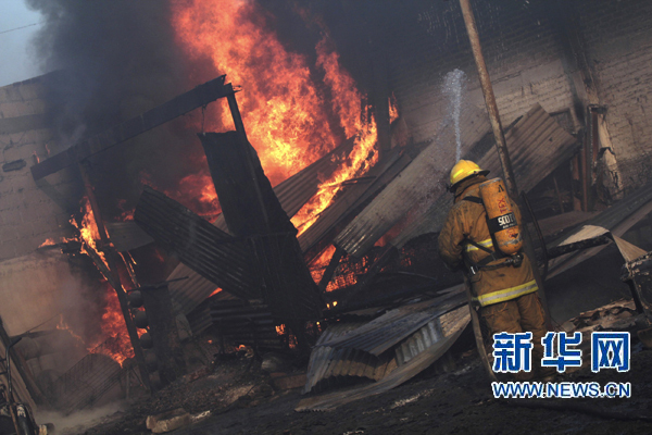 12月19日,一名消防員在墨西哥中部圣馬丁-特斯梅盧坎村的石油管道爆炸現場滅火。新華社/路透