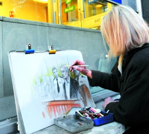 12月7日,倫敦,法院的藝術(shù)家在描繪阿桑奇受審的畫面。由于不能拍照,一些報(bào)道采用繪畫展現(xiàn)法庭現(xiàn)場。