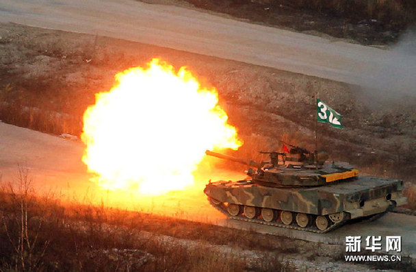 12月23日,在韓國抱川,K-1坦克在演習中。當日,韓國陸軍和空軍在京畿道抱川市軍用射擊場舉行了“最大規模的聯合火力演習”。新華社/聯合通訊社