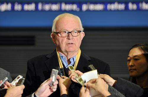 資料圖片:1月4日,美國朝鮮問題特使斯蒂芬·博斯沃思在韓國仁川機場回答記者提問。美國朝鮮問題特使斯蒂芬·博斯沃思于3日啟程訪問韓國、中國和日本,就朝鮮半島局勢下一步如何行動展開磋商。新華社/法新