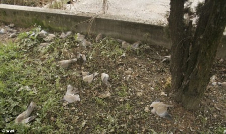 據(jù)外媒報道,意大利法恩扎市(Faenza)又有上千只斑鳩集體死亡,嘴部有藍(lán)色斑點。據(jù)專家猜測死因是過量飲食和消化不良。