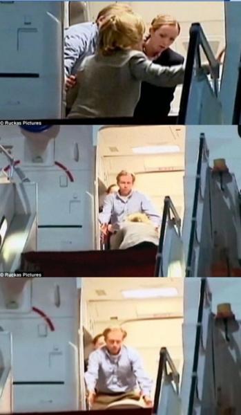希拉里在機(jī)艙門口腳下一滑,摔了一跤,助手見(jiàn)狀趕緊攙扶
