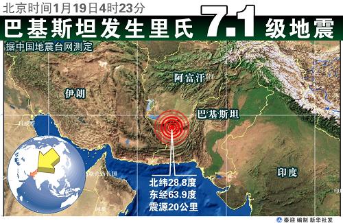 方亮:據(jù)巴基斯坦媒體報(bào)道,當(dāng)?shù)貢r(shí)間19日凌晨1時(shí)20分左右,該國(guó)西南部發(fā)生里氏7.4級(jí)地震。部分房屋在地震中倒塌,但迄今尚無(wú)具體傷亡情況報(bào)道。