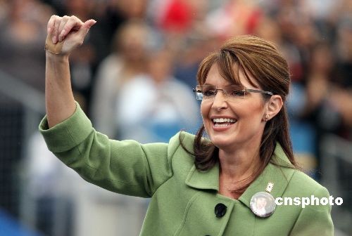 美國共和黨副總統候選人莎拉·佩林10月4日來到加州卡森市出席造勢大會,近兩萬名共和黨支持者到場為佩林助威。 中新社發 楊正 攝