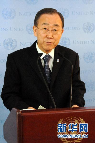 聯(lián)合國(guó)秘書長(zhǎng)潘基文17日在紐約聯(lián)合國(guó)總部發(fā)表講話,敦促埃及遵守舉行自由和透明選舉的承諾,建立一個(gè)民主的民選政府。