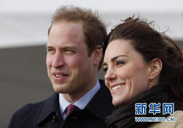 2月24日,在威爾士北部安格爾西郡,英國威廉王子(左)和未婚妻凱特·米德爾頓出席一場救生艇啟用儀式。這是威廉王子和凱特·米德爾頓自去年10月訂婚后首次共同公開亮相。 新華社/路透