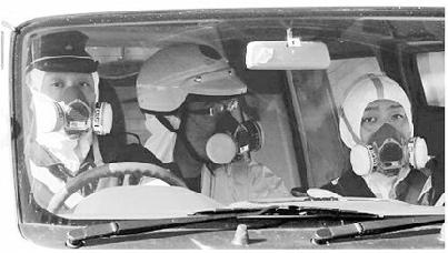 在福島核電站以南10公里的相馬市巡邏的警察。(攝于3月12日下午)