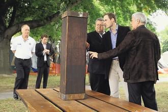 英國威廉王子到訪新西蘭克萊斯特徹奇市,仔細觀看澳大利亞搜索救援紀念碑。