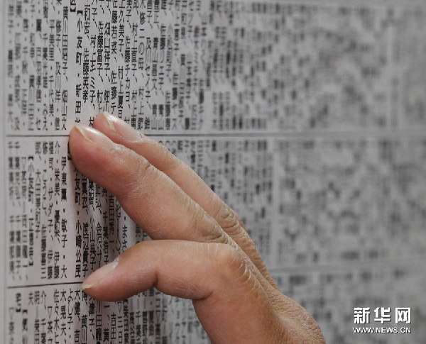 3月18日,一名災(zāi)民在日本北部陸前高田的一座避難所內(nèi)查找親人的名單 新華社/路透