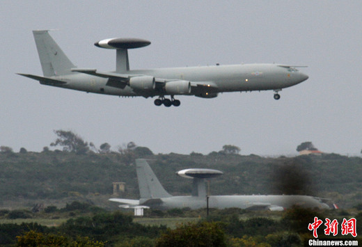 3月20日,在位于塞浦路斯的英國阿克羅蒂里空軍基地,一架英國皇家空軍飛機準備著陸,另一架飛機停在后方。美國國防部聯合參謀部主任威廉·格特尼19日在五角大樓新聞發布會上透露,在第一波襲擊中,美國和英國的軍艦和潛艇向利比亞海岸的20多個防空目標發射了112枚戰斧式巡航導彈。