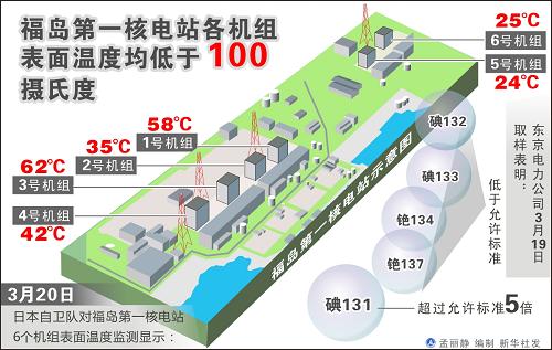 圖表:福島第一核電站各機(jī)組表面溫度均低于100攝氏度新華社發(fā)