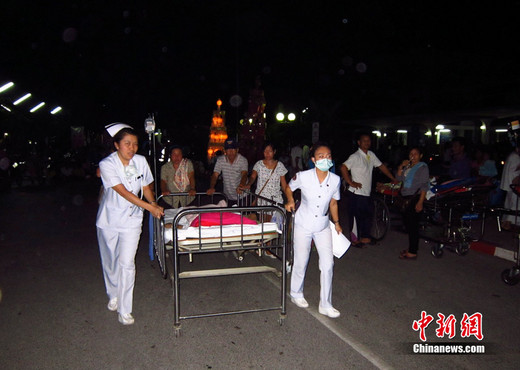 根據美國地質勘探局地震信息網發布的消息,緬甸東北部地區當地時間3月24日晚,在相距不到一分鐘時間內連續發生兩次7級強震。泰國、越南、我國云南和廣西等有震感。圖為泰國清萊震感明顯,醫院病人被疏散至室外。