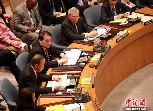 當地時間3月24日,聯合國安理會就利比亞問題舉行公開會議,聽取了聯合國秘書長潘基文通報關于利比亞局勢的第1973號決議執行情況。安理會隨后轉入閉門磋商,各方就利比亞問題闡述了看法。安理會本月輪值主席、中國常駐聯合國代表李保東主持會議。中新社發 孫宇挺 攝